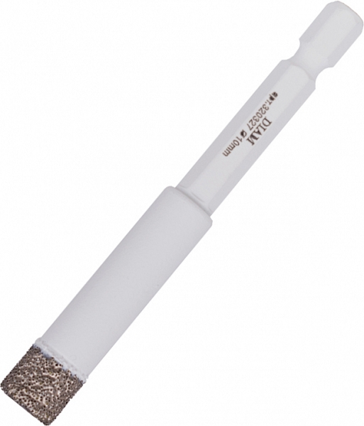 Алмазное сверло вакуумного спекания Diam Extra Line V-Tech HEX-E 1/4" 10 мм (Диам Экстра Лайн В-Теч Хекс-Е 1/4" 10 мм) предназначено для сверления отверстий Ø 10 мм, глубиной до 35 мм в керамике, граните, керамограните, мраморе, ониксе, травертине без водяного охлаждения при помощи шуруповерта или дрели.