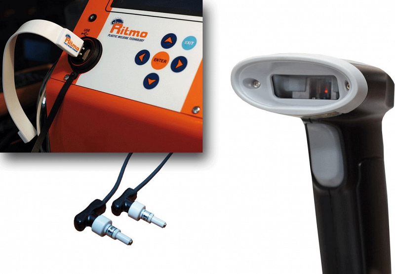 - Лазерный сканер считывает штрих-код фитинга и устанавливает сварочные параметры