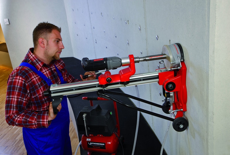 Дрель для алмазного сверления Rothenberger Rodiadrill Ceramic Eco (Ротенбергер Родиадрилл Керамик Эко) предназначена для бурения отверстий навесу и стационарно с подачей воды в бетоне и железобетоне Ø 6 – 35 мм, а также в кирпиче и камне Ø 6 – 67 мм.