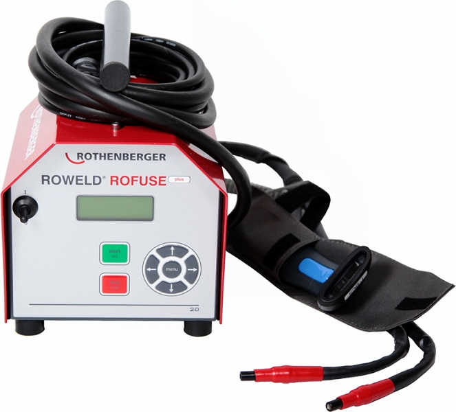 Электромуфтовый сварочный аппарат без протоколирования Rothenberger Roweld Rofuse Plus 2.0 (Ротенбергер Ровелд Рофьюз Плюс 2.0) – аппарат для электромуфтовой сварки пластиковых полимерных (полиэтиленовых (пэ, пнд) и полипропиленовых (пп)) труб Ø до 1200 мм с помощью электрофитингов (электрических муфт с закладным нагревательным элементом), с напряжением на выходе 8 – 48 В, широко применяется на стройплощадках при монтаже инженерных коммуникаций и аварийно-восстанавительных работах на трубопроводах.