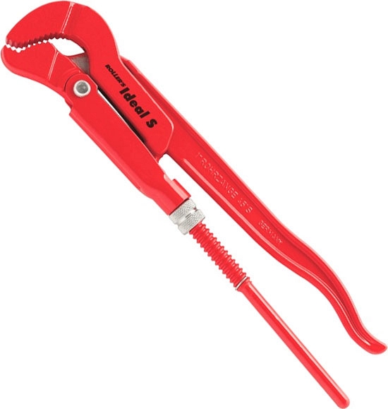 Газовый ключ с S-образными губками 45° Roller Ideal S 1/2" (Роллер Идеал С 1/2") – надежный профессиональный сантехнический разводной трубный шведский (шведик) ключ для фиксации труб Ø до 15 мм (1/2"), захвата гаек, болтов, плоских заготовок.