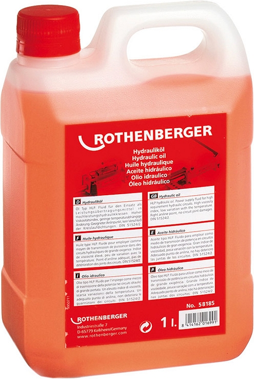 Гидравлическое масло для трубогибов Rothenberger 1 л (Ротенбергер 1 л) предназначено для гидравлических систем ручных и электрических гидравлических трубогибов всех производителей.