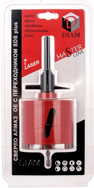 Коронка для подрозетников по бетону с переходником M16/SDS-Plus Diam Master Line 82 мм (Диам Мастер Лайн 82 мм) – алмазное кольцевое сверло для ручного сухого сверления глухих подрозеточных отверстий Ø 82 мм в стенах из кирпича, неармированного и слабоармированного бетона без применения охлаждающей жидкости. Лазерная сварка алмазных сегментов обеспечивает надежное соединение сегментов и корпуса сверла, что практически исключает отрыв сегмента в процессе сверления.