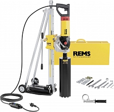 Rems Пикус SR базовый пакет со стойкой Rems Титан, включая комплект крепежа для кирпичной кладки и бетона и универсальные алмазные коронки для сверления Rems UDKB Ø 62 – 82 – 132 мм. Другие сетевые напряжения по запросу.
