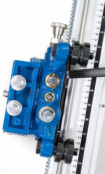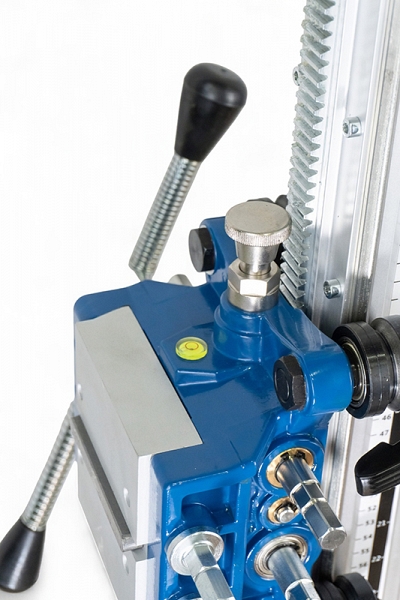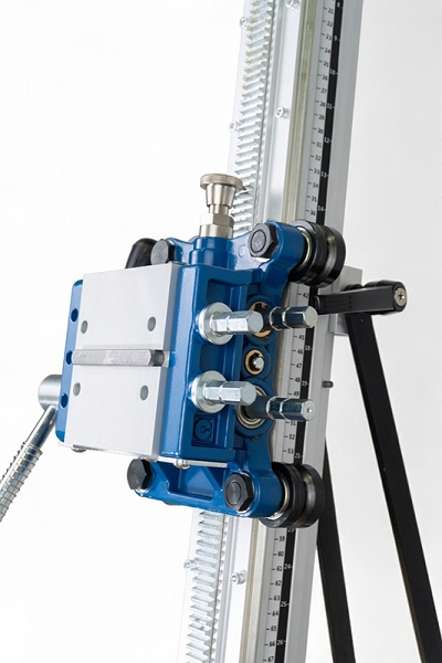 - Роликовая подача хода: металлические ролики каретки с гребневым исполнением обеспечивают точную подачу алмазной коронки и отсутствие люфтов