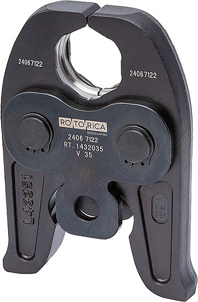 Пресс-клещи Rotorica Basic V 35 (Роторика Бейсик В 35) предназначены для обжатия радиальных пресс-фитингов тонкостенных металлических (медных, нержавеющих и стальных) труб Ø 35 мм профилем V.