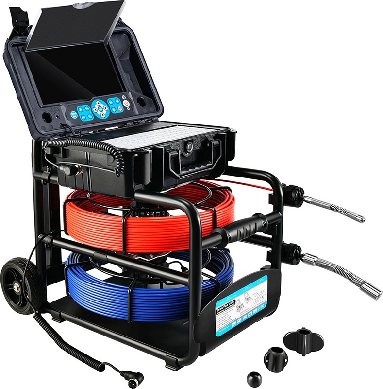Проталкиваемая система видеоинспекции труб Rotorica 3499F-Dual-20 (Роторика 3499Ф-Дуал-20) с камерами CMOS, Ø 18 × 135 мм, широким углом обзора 82° и Ø 23 × 155 мм, широким углом обзора 120°, разрешением формата Full HD 1080P AHD (1920 × 1080), записью видео и аудио, встроенными счетчиками расстояния и катушками с кабелями Ø 4,8 мм × 20 м и Ø 5,2 мм × 20 м предназначена для осмотра внутренних трубопроводов, канализации и сливов, а также для инспекции каналов, дымоходов, воздуховодов в производствах и домах.