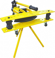 - Штатный комплект включает в себя помимо самого трубогиба подставку-треногу и ролики для его комфортного передвижения
