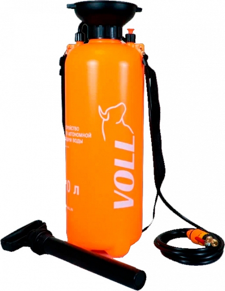 Ручной насос для воды Voll 10 л (Волл 10 l) – устройство емкостью 10 л с пластиковым корпусом и гибким шлангом с соединительной муфтой для автономной подачи воды в область бурения алмазной коронкой для охлаждения и вымывания шлама к установкам алмазного бурения.