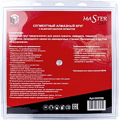 Сегментный алмазный круг Diam Master Line 1A1RSS Гранит 350 мм (Диам Мастер Лайн 1А1РСС Гранит 350 мм) – специальный сегментный алмазный отрезной диск для сухой и мокрой резки гранита, кварца, клинкера, твердых песчаников на бензорезах, электрических резчиках, камнерезных станках, стенорезных машинах, швонарезчиках и другом оборудовании, как с подачей, так и без подачи охлаждающей жидкости.