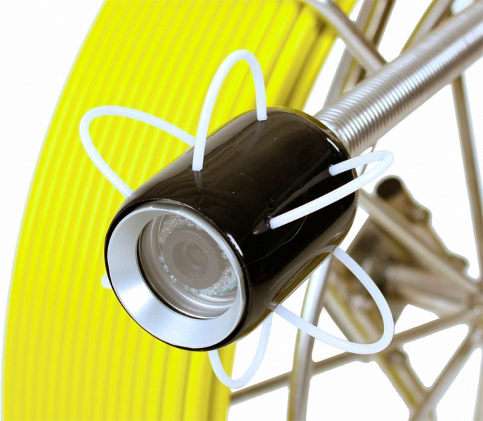 - Видеокабель Ø 9 мм (0,35") × 120 м на надежном барабане из нержавеющей стали с колесами