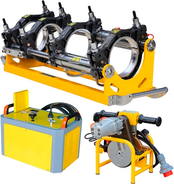 Стыковой сварочный аппарат Welping WP160A (Велпинг ВП160А) – полуавтоматическая электрогидравлическая стыковая сварочная машина для сварки пластиковых (ПЭ (полиэтиленовых), ПП (полипропиленовых), ПВДФ (поливинилиденфторидовых) / PE, PP, PVDF) труб Ø 63, 75, 90, 110, 125, 140, 160 мм на стройплощадках при прокладке дренажных труб и водопроводных магистралей.