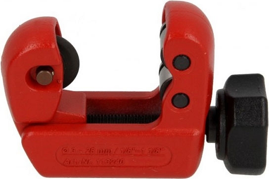 Труборез для медных и нержавеющих труб Roller Corso Cu-Inox 3-28 Mini (Роллер Корсо Ку-Инокс 3-28 Мини) – компактный надежный роликовый ручной труборез для резки медных, латунных, алюминиевых, тонкостенных стальных, тонкостенных нержавеющих стальных труб Ø 3 – 28 мм (1/8" – 1 1/8"), толщиной стенки до 4 мм в труднодоступных местах.