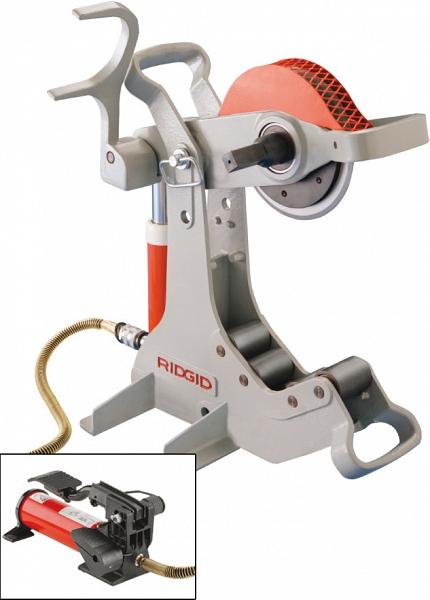 - Роликовые опоры трубы Ridgid можно использовать для того, чтобы вращать трубу, в то время как второй оператор применяет шлифовальный станок для снятия фаски трубы