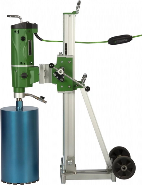 Установка алмазного бурения Bycon Pro-500 (Байкон Про-500) предназначена для сверления отверстий Ø до 502 мм в бетоне, железобетоне, кирпиче, камне и других материалах, под углом до 45°, с подачей воды, для профессионального использования.