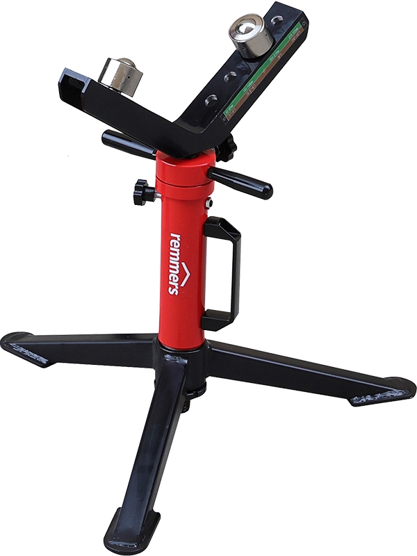 V-образная регулируемая роликовая трубная опора Remmers Triton 1-12 (Реммерс Тритон 1-12) предназначена для работы с трубами Ø 25 – 300 мм (1" – 12"). Широко используется при сварке тяжелых, фасонных, твердых и круглых труб; для поддержки труб во время накатывания желобков, нарезания резьбы, резки, снятия фаски, вырезания отверстий и т.д.