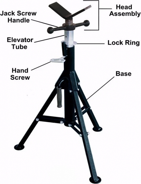 V-образная регулируемая складная опора для труб Hongli 1107S (Хонгли 1107С) предназначена для работы со стальными трубами Ø 3 – 300 мм (1/8" – 12"). Применяется с резьбонарезными станками и клуппами для нарезки резьбы на трубах, желобонакаточными станками для накатки желобков на трубах, труборезами для резки труб и другими инструментами.