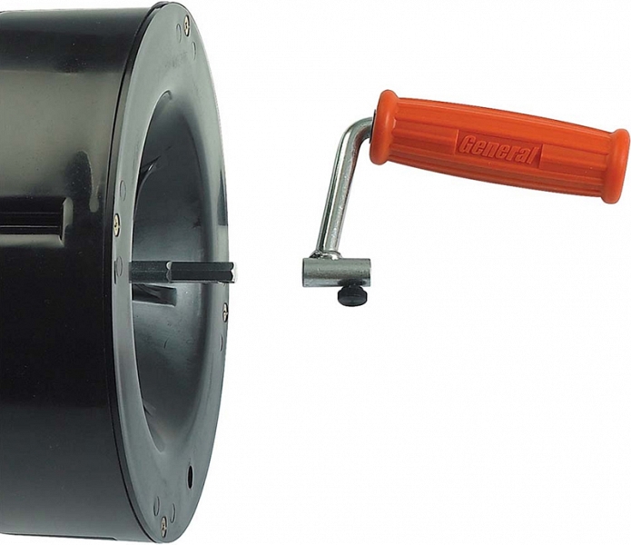 - Прочный пластиковый барабан с удобной поворотной рукояткой и вместимостью до 15 м прочистных спиралей Ø 6 мм (1/4") или 8 мм (5/16"): прочистная спираль располагается в барабане, что позволяет избегать ее контакта с чистыми поверхностями кухни и ванной комнаты